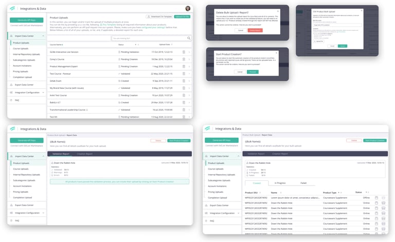 Import Data Center - upload large volumes of information listing Seller Products, Course/Services, Internal Repository Materials, Pricing Models, among others...